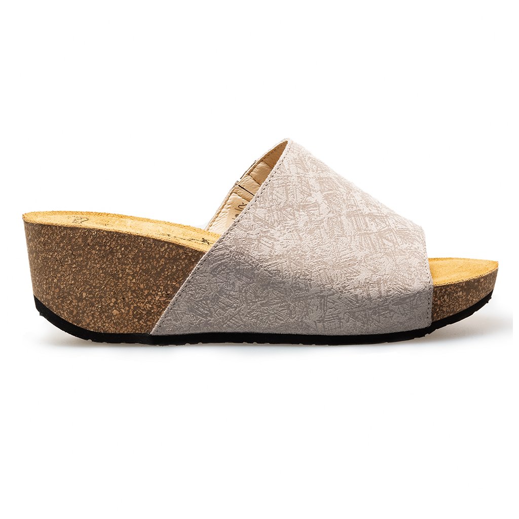 Schlüpfen Sie in diese beige-grauen Keilpantoffeln und genießen Sie einen Tag voller selbstbewusster Schritte, egal ob bei der Arbeit oder in Ihrer Freizeit!