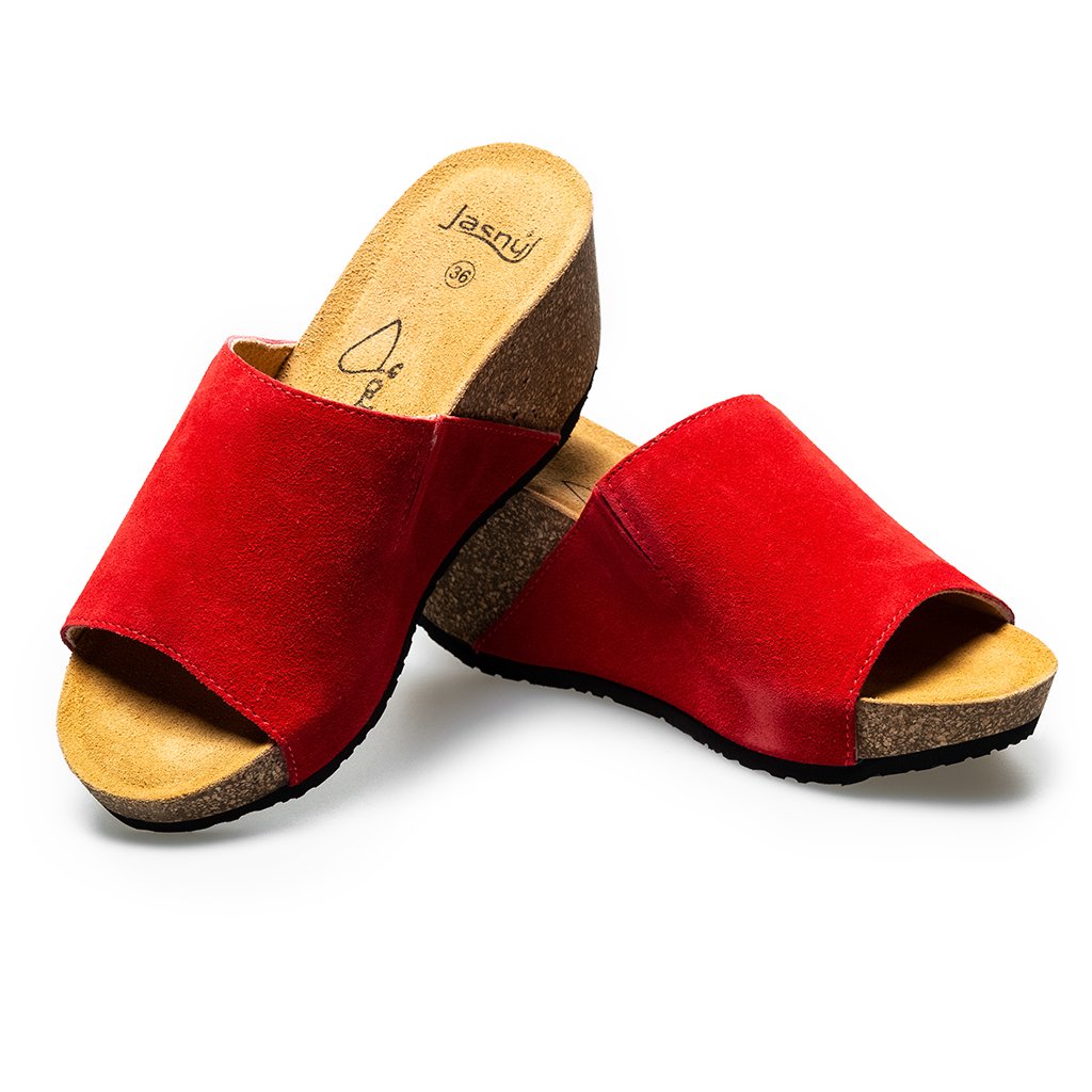 Schlüpfen Sie in ein Paar rote Keilpantoffeln und genießen Sie einen Tag voller Selbstvertrauen, Komfort und müheloser Eleganz, sowohl im Büro als auch in Ihrer Freizeit!