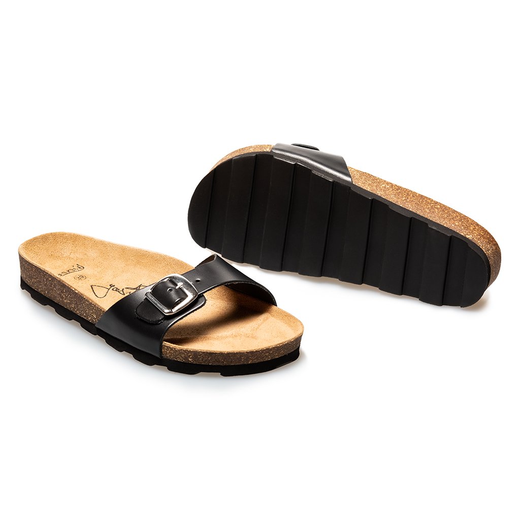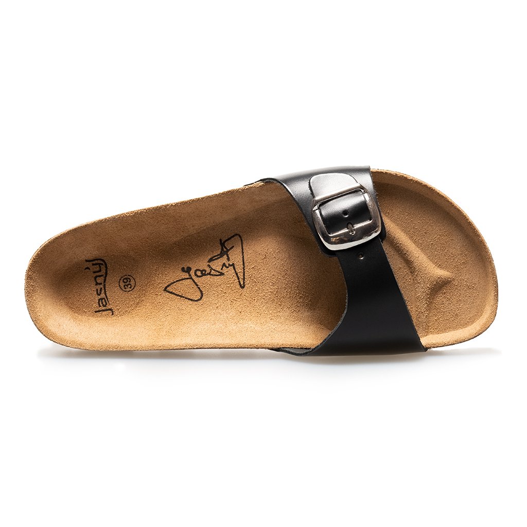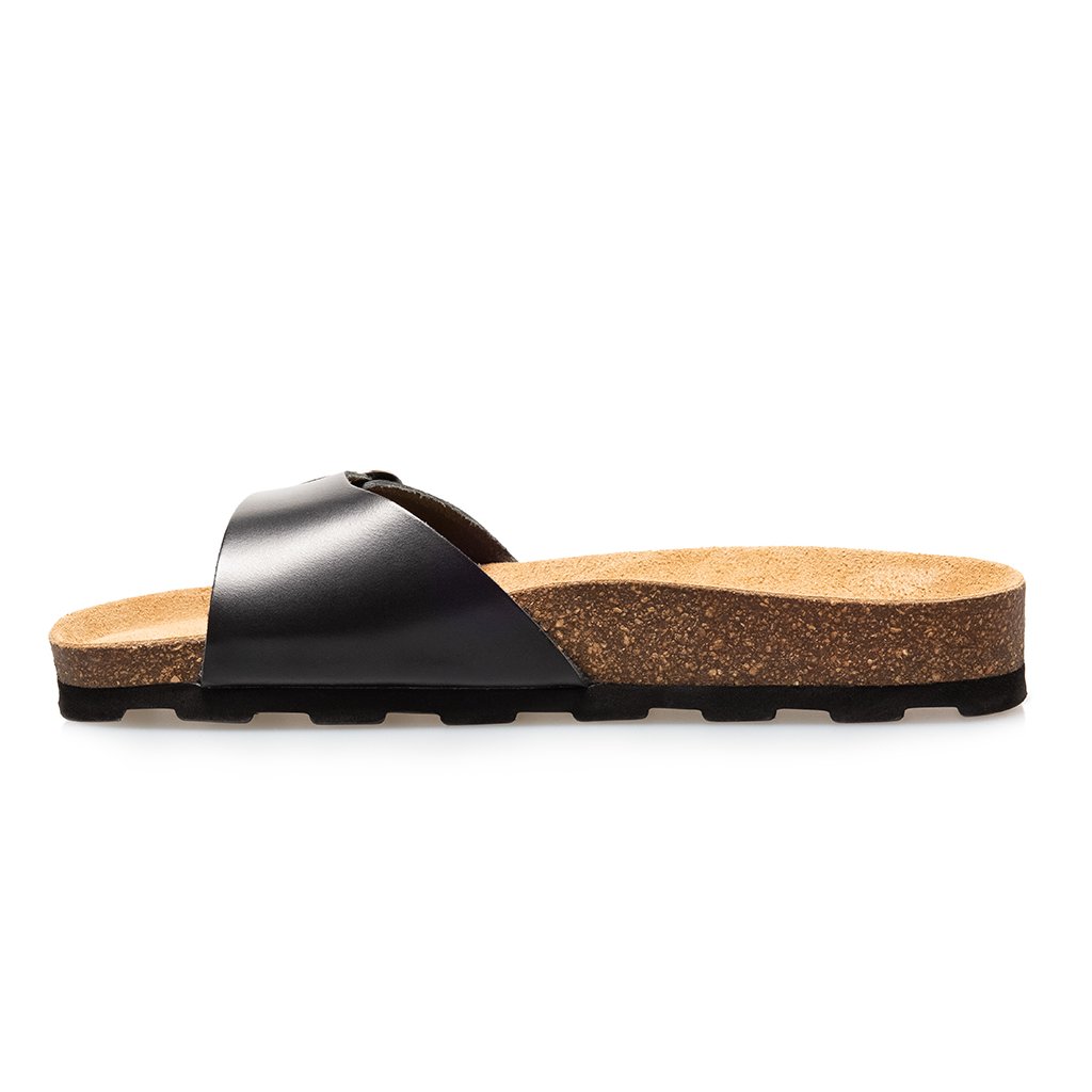 Schwarze Cork-Slipper mit hochwertigem Lederriemen – stellen Sie sich eine Kombination aus zeitloser Eleganz und entspanntem Komfort vor, die Ihre Füße wie königlich verwöhnt. Dies sind keine gewöhnlichen Schuhe, sondern eine Einladung, Ihren Tag mit Anmut zu beschreiten und dabei den Stil eines roten Teppichs zu bewahren. Ob Sie sie zu Ihrer Lieblingsjeans, einem kleinen schwarzen Kleid oder einem lässigen Outfit tragen, der schwarze Riemen und die natürliche Cork-Innensohle sorgen dafür, dass sich alle nach Ihnen umdrehen und Ihnen anerkennend zunicken.