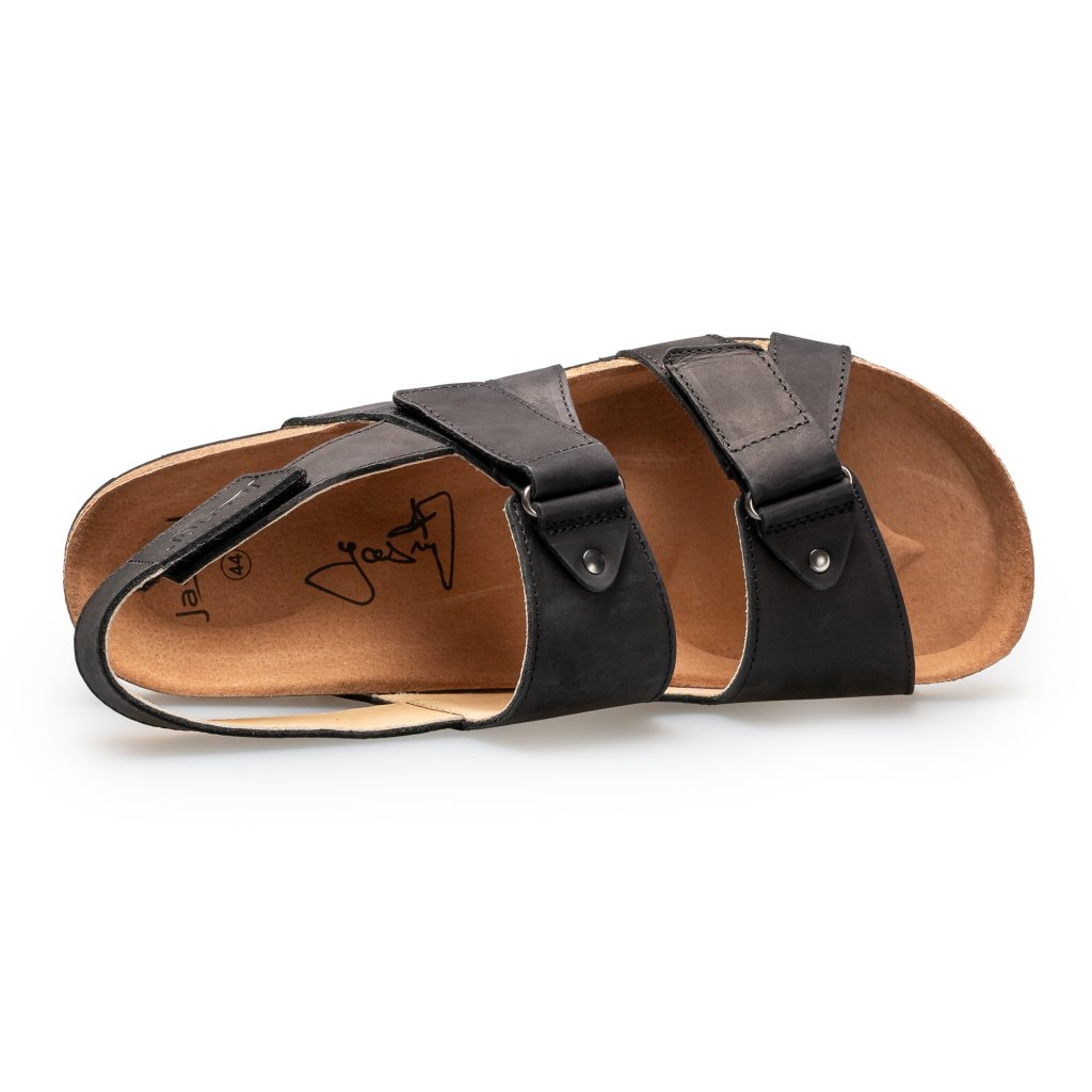Handgefertigtes Echtleder mit einer dezenten Patina verleiht diesen Sandalen einen zeitlosen Charakter. Luxuriöses Design, anatomisch geformtes Fußbett und perfekter Komfort – für Männer, die wissen, dass Stil und Gesundheit Hand in Hand gehen können. Die zeitlose schwarze Farbe unterstreicht Ihren raffinierten Geschmack und passt zu jedem eleganten Outfit.