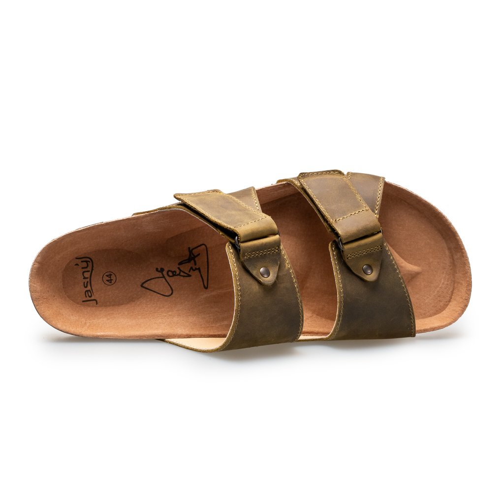 Wenn Sie in diese hochwertigen Ledersandalen mit Patina-Finish schlüpfen, spüren Sie sofort den Unterschied. Präzise Handwerkskunst und eine ergonomische Form unterstreichen Ihre Individualität und Ihren Komfort bei jedem Schritt. Denn wahrer Luxus beginnt bei den Füßen. Das edle Dunkelgrün verleiht Männern, die sich nicht scheuen, sich von der Masse abzuheben, eine außergewöhnliche Eleganz und einen Hauch von Originalität.