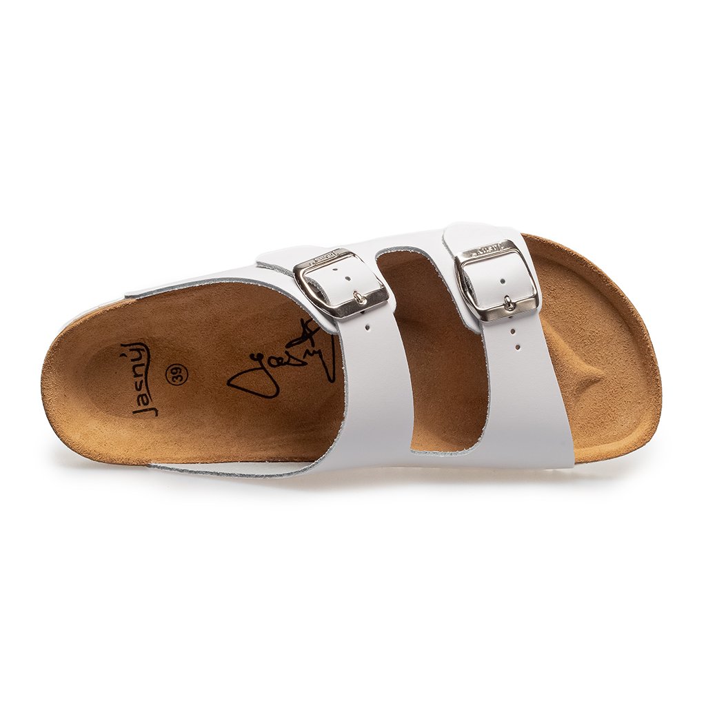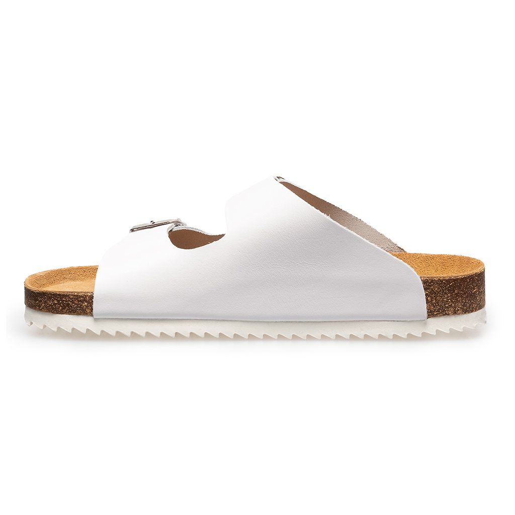 Treten Sie ein in eine Welt der Reinheit und Schlichtheit mit unseren handgefertigten Kork-Slippern mit zwei Riemen aus hochwertigem Leder. Weiß symbolisiert einen neuen Abschnitt Ihrer Eleganz – jeder Schritt wird zu einem leichten und frischen Ausdruck moderner Minimalismus.