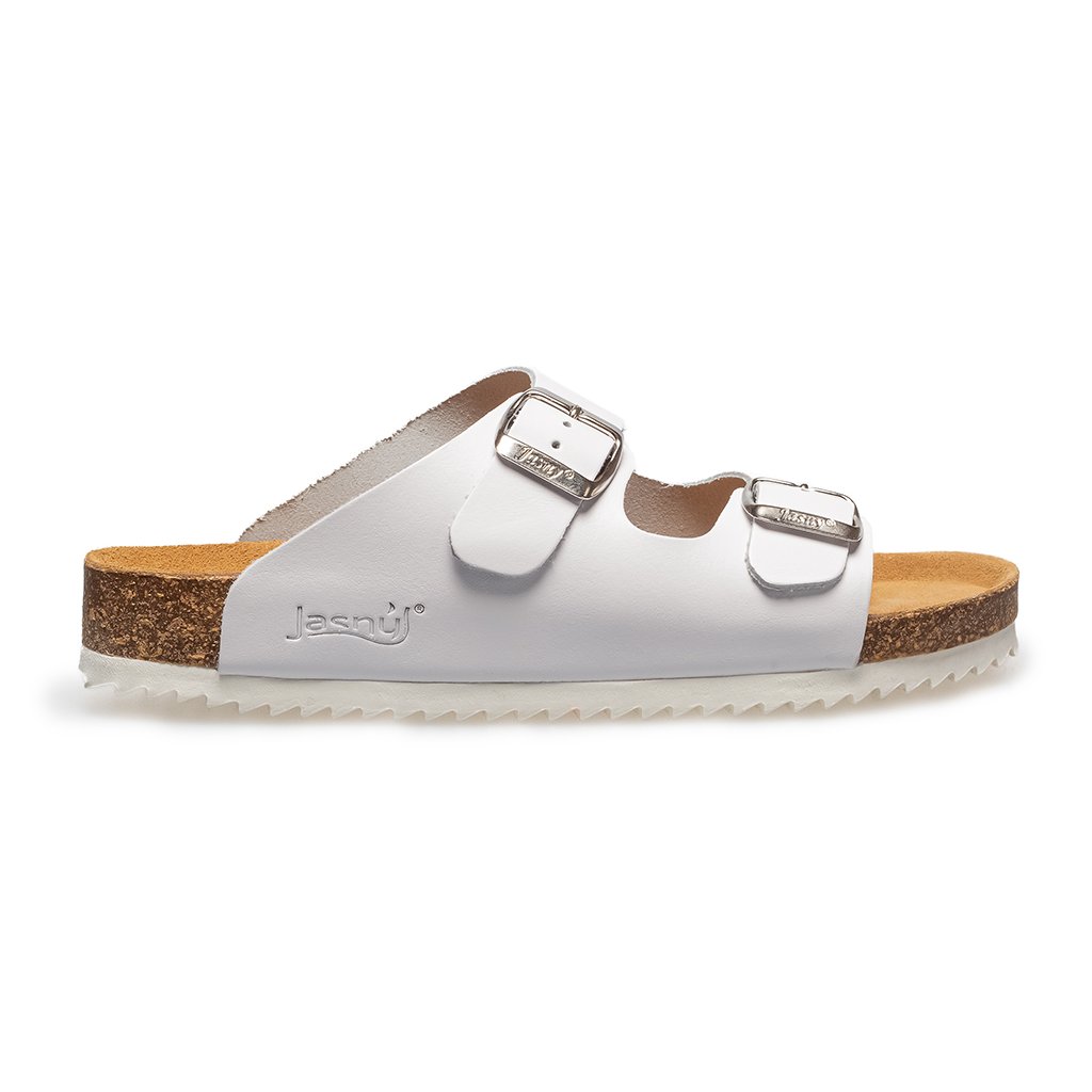 Minimalistische, stilvolle Hausschuhe in der beliebten Farbe Weiß, die sowohl Frauen als auch Männern stehen. Sie können auch im Arbeitsumfeld getragen werden – im Gesundheitswesen, in der Gastronomie oder in der Kosmetik.