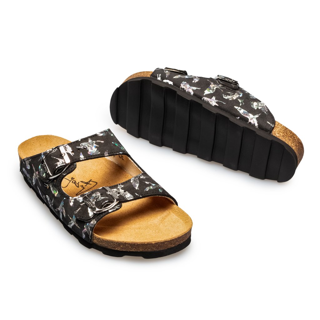 Seien Sie eine Ikone des Stils und der Originalität! Diese luxuriösen Slipper sind nicht nur Schuhe – sie sind ein Ausdruck von Mut, Selbstbewusstsein und Einzigartigkeit. Das elegante schwarze Leder verbirgt eine Überraschung: ein holografisches Reihermuster, das mit dem Licht spielt und sich mit jedem Schritt verändert. Jedes Paar ist eine meisterhafte Kombination aus hochwertigen Materialien und präziser Handwerkskunst, entworfen für Frauen, die Qualität, Komfort und außergewöhnliches Design schätzen.
